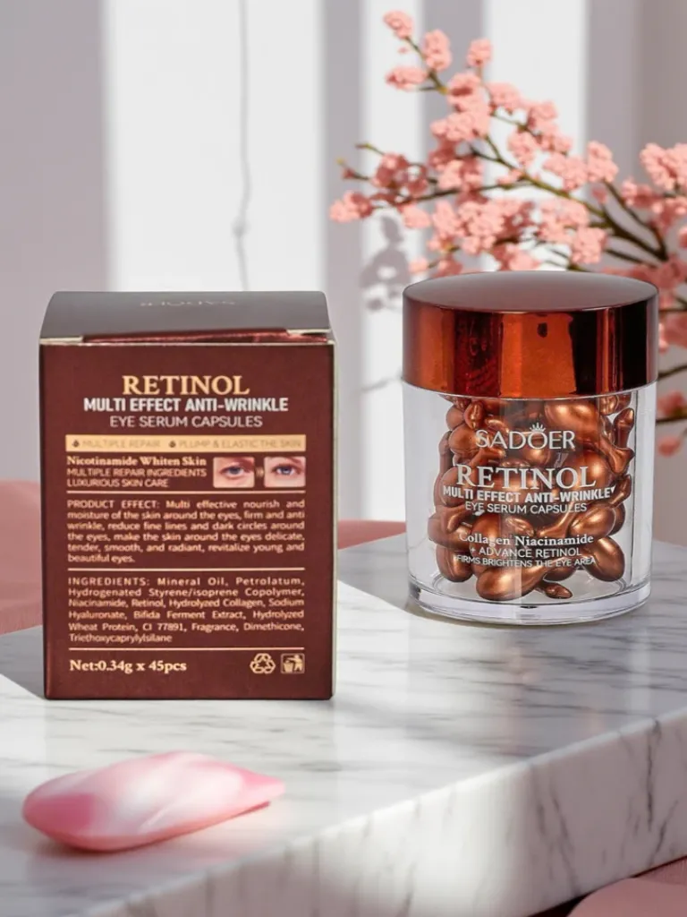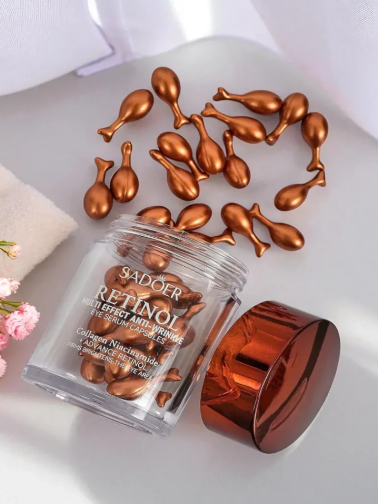 - Kapsułki pod oczy z kolagenem i retinolem. Skutecznie wygładzają zmarszczki, ujędrniają skórę i redukują cienie. Intensywna kuracja dla odmłodzonego, świeżego spojrzenia i poprawy elastyczności delikatnej skóry pod oczami.