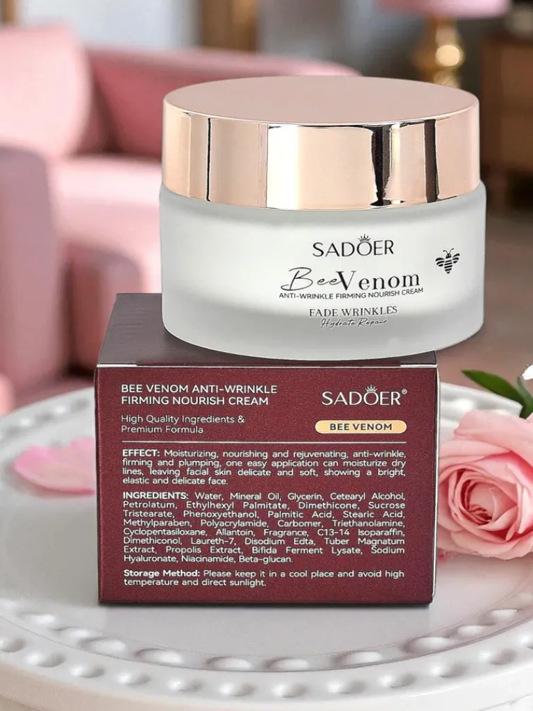 - Krem do twarzy z jadem pszczelim intensywnie nawilża i regeneruje skórę, poprawiając jej elastyczność. Działa kojąco, wspomaga walkę z zmarszczkami, pozostawiając skórę gładką, jędrną i pełną blasku.