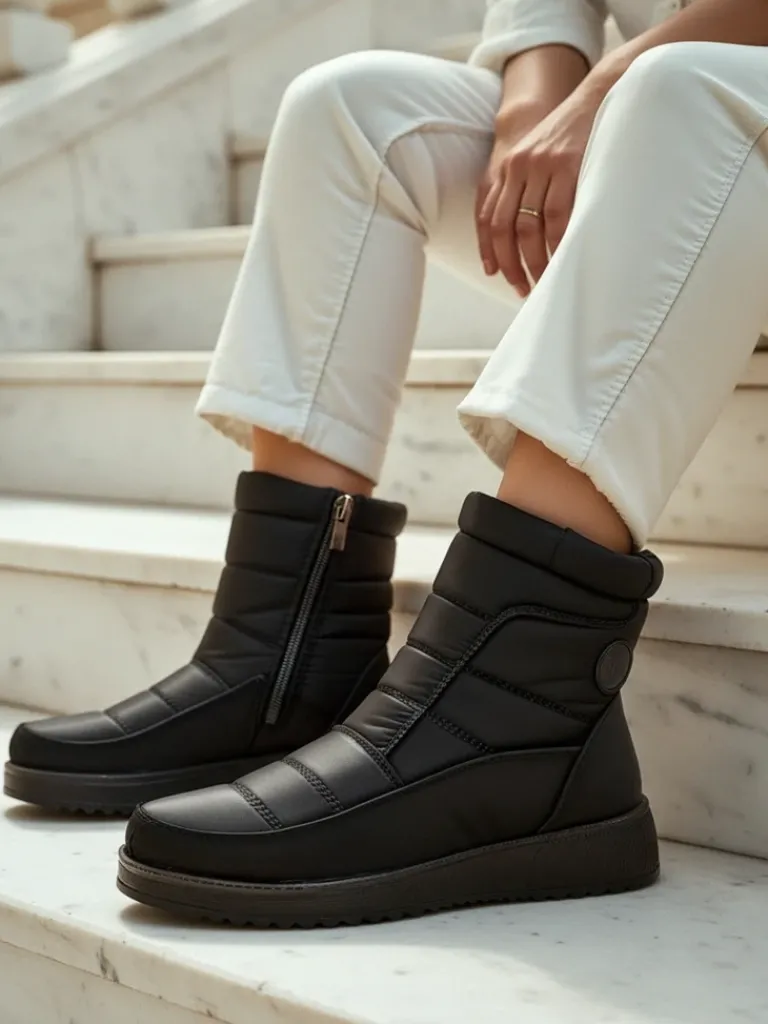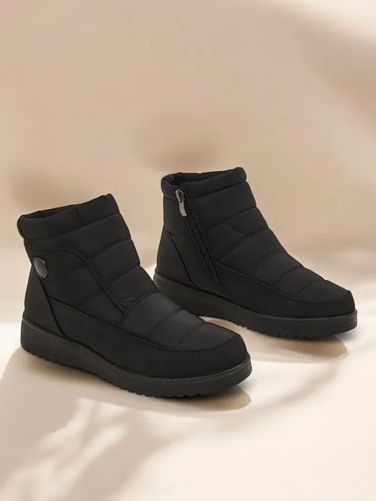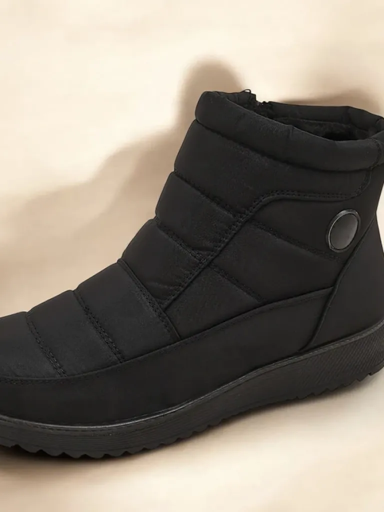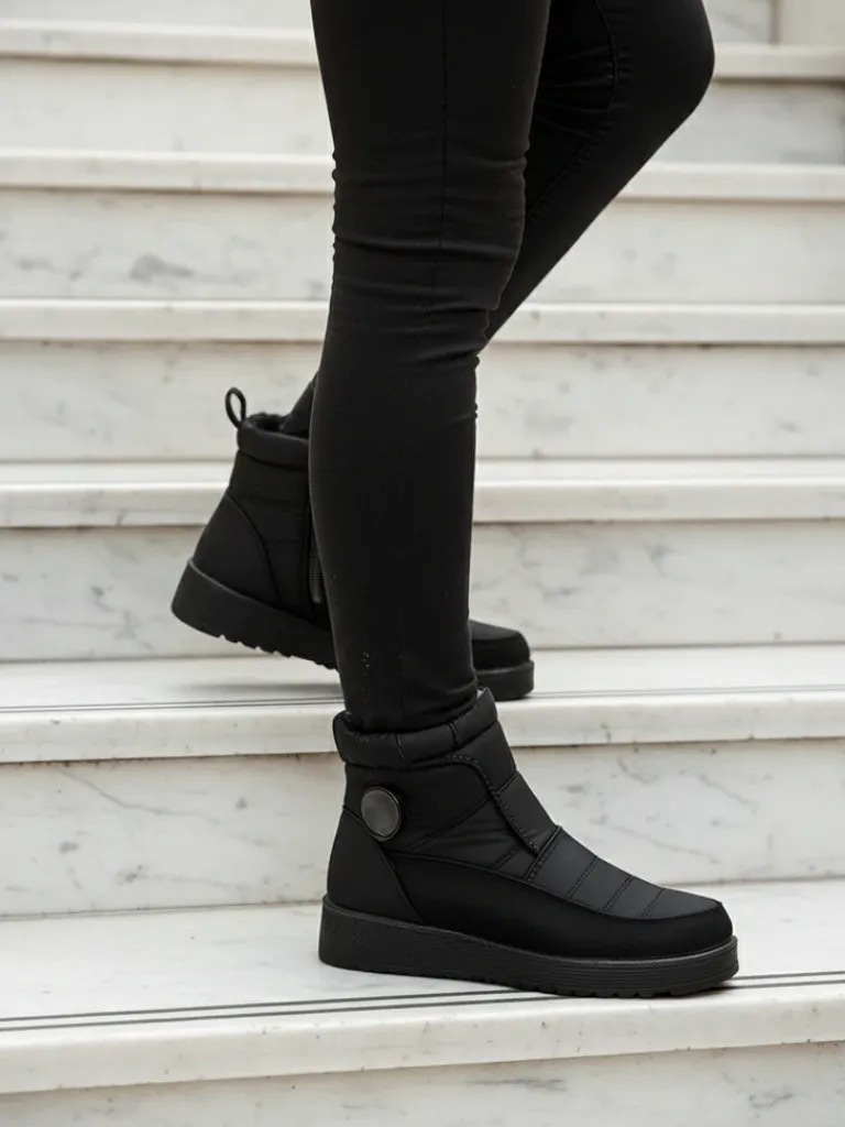 - Świetne damskie zimowe buty typu śniegowce na płaskim obcasie. Cholewka wykonana jest z tkaniny a’la cerata, środek ocieplony futerkiem. Idealna baza na zimę!