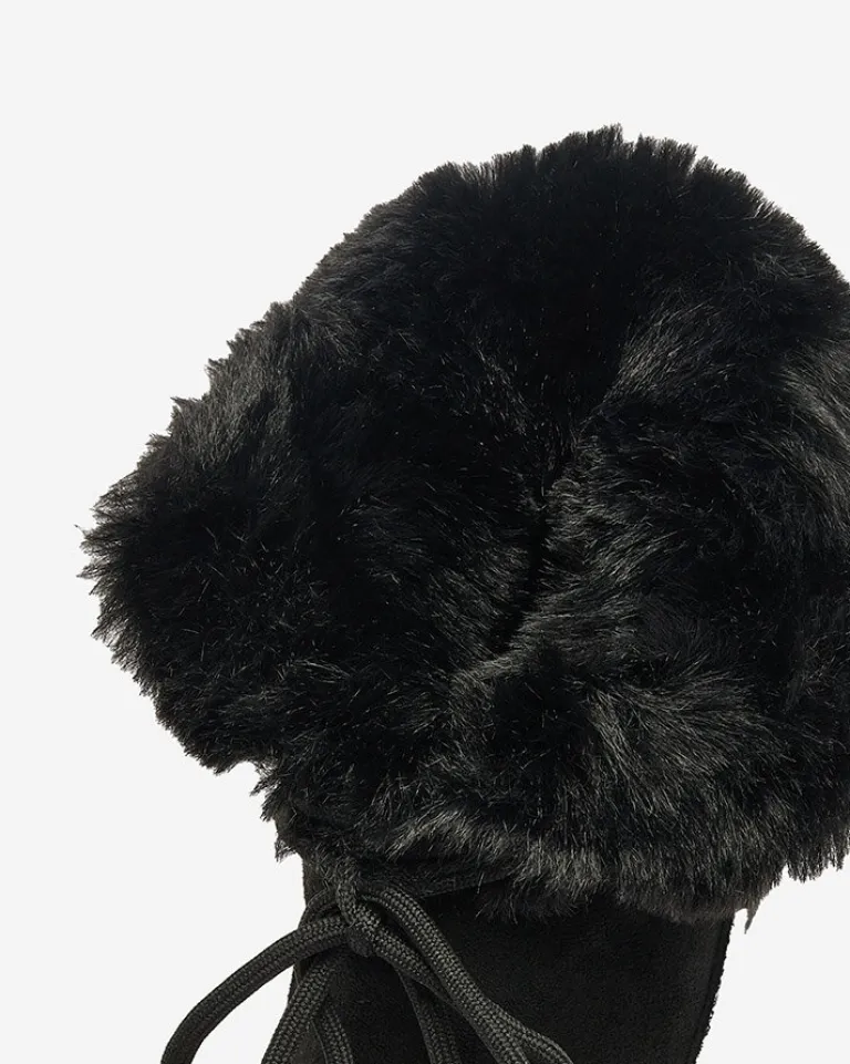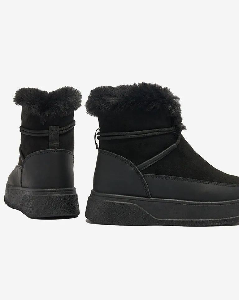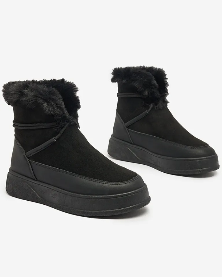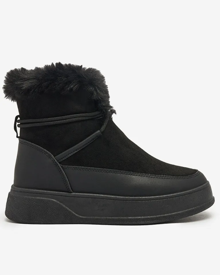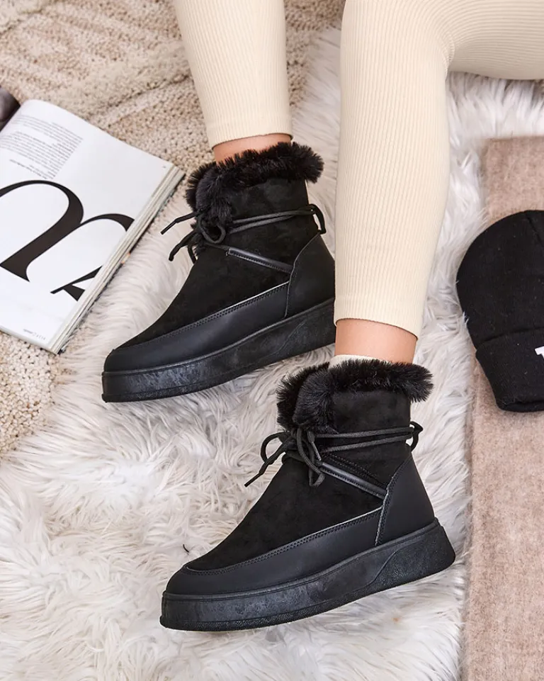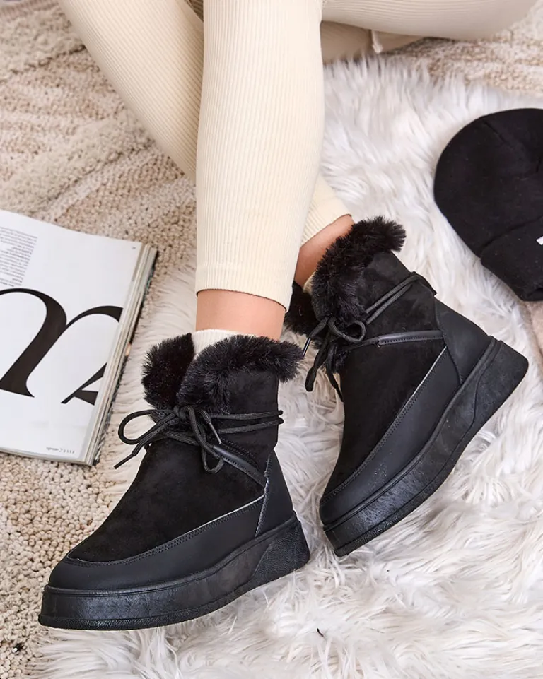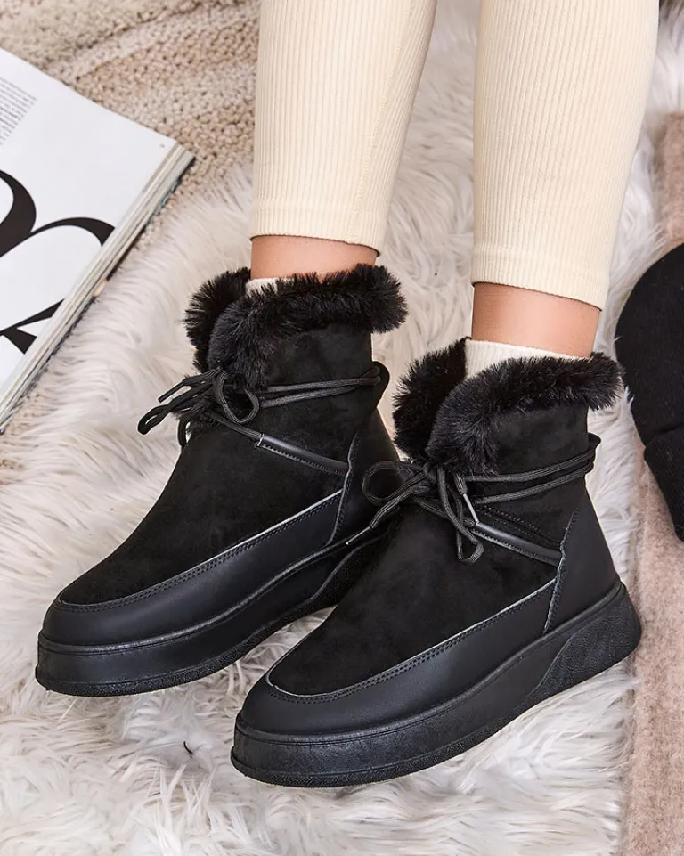 - Damskie obuwie typu śniegowce z cholewką wykonaną z połączenia eko skóry oraz eko skóry zamszowej. W środku wyłożone futerkiem, obuwie wsuwane i sznurowane. Eleganckie i komfortowe!