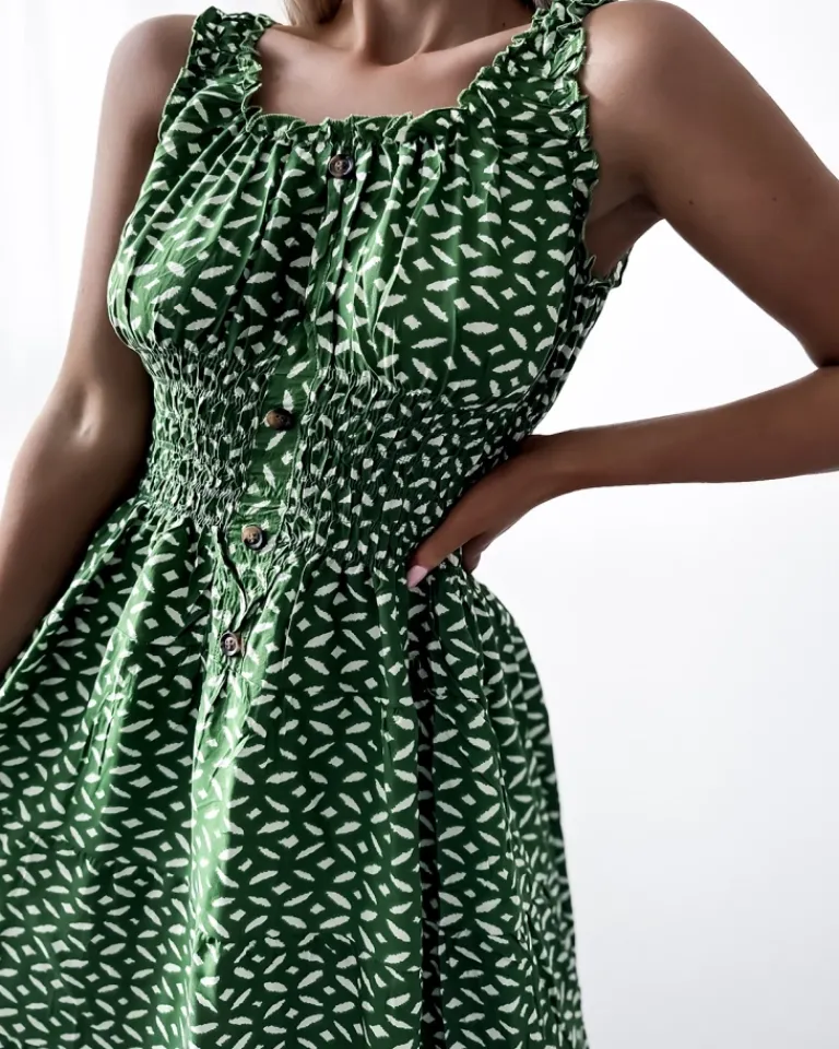 Sale Sukienka damska za kolano z printem w kolorze ciemnom Sukienki Letnie|Sukienki Długie