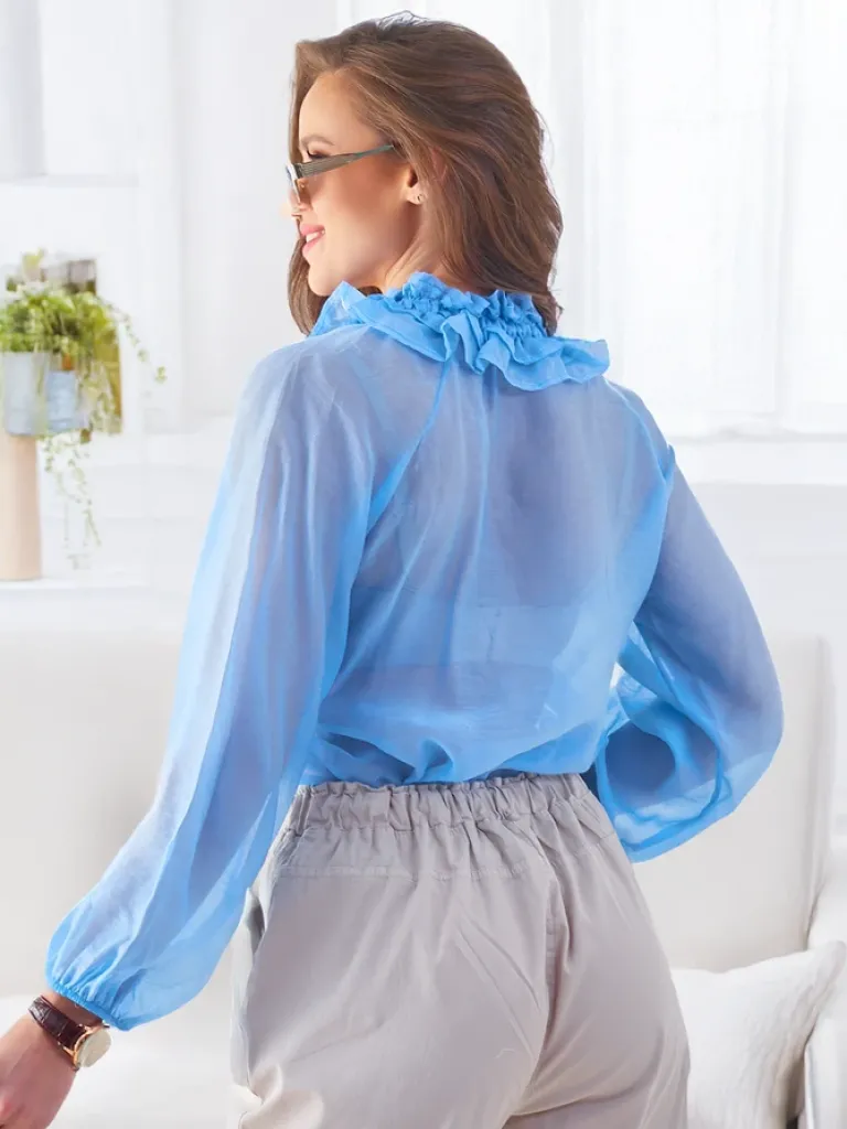- Transparentna damska koszula z ozdobnym kołnierzykiem to elegancki i zmysłowy wybór na każdą okazję. Subtelna przezroczystość i unikalny detal kołnierzyka dodają jej wyjątkowego charakteru. UWAGA: Dokładność pomiaru (+/-) 1 cm.