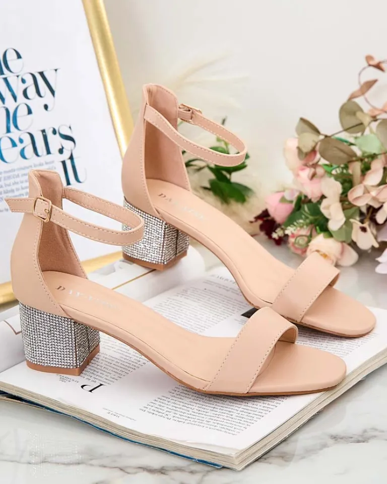 - Sandałki na słupku wykonane z ekologicznej skóry i eko skórzanej wkładki, zapinane na sprzączkę. Czółenka są na wygodnym słupku zdobionym cyrkoniami co dale lepszą wygodę, a sprzączka ułatwia ich zakładanie.