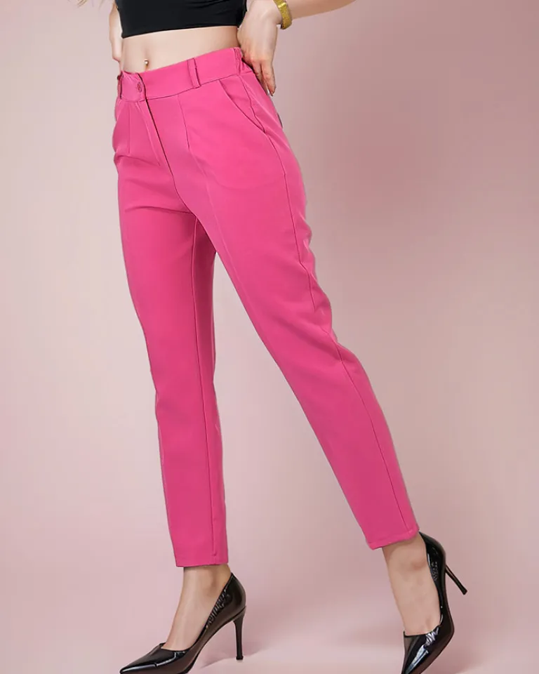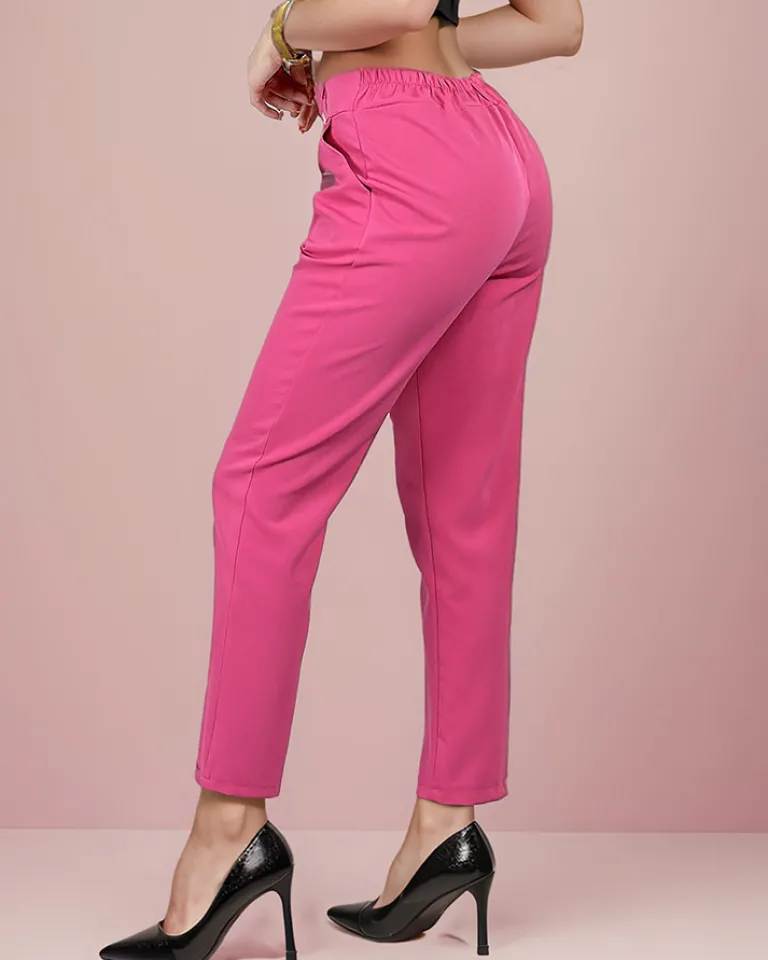- Eleganckie spodnie wykonane z lekkiej tkaniny, model posiada gumę w pasie oraz dwie kieszenie i guzik. Wygodne i komfortowe! UWAGA: Dokładność pomiaru (+/-) 1 cm.