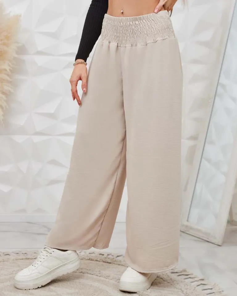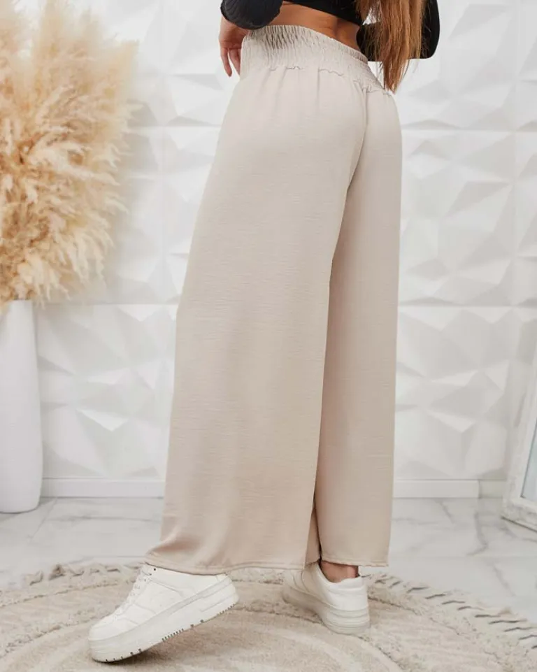 - Fenomenalne szerokie spodnie wykonane z lekkiej tkaniny, model posiada szeroką gumę w pasie. Hit tego sezonu! UWAGA: Dokładność pomiaru (+/-) 1 cm.
